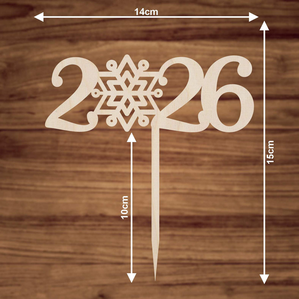 CAKE TOPPER 2026 aus Holz - Tortendeko & Kuchendeko - Silvester - Torten-stecker