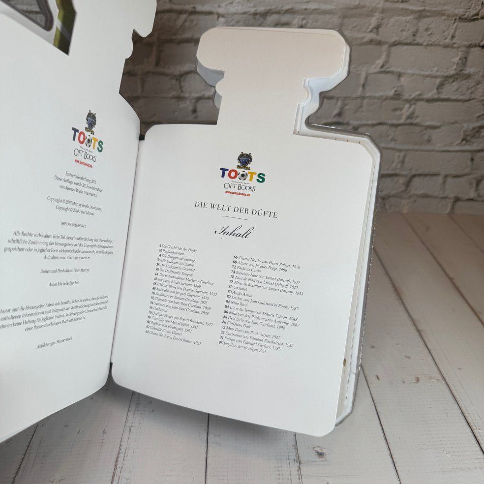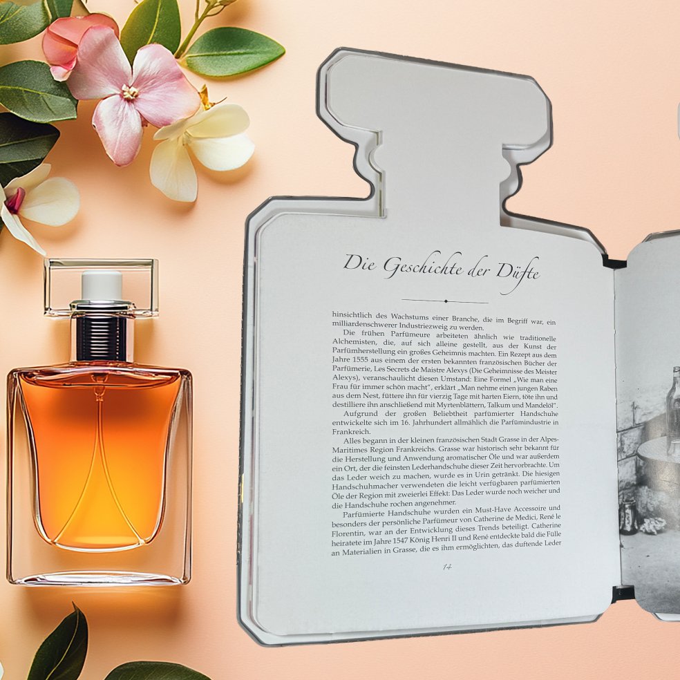 "Die Welt der Düfte" ist ein einzigartiges Geschenkbuch, das die faszinierende Welt der Parfumerie in all ihren Facetten präsentiert. Es sieht aus wie ein edles Parfümflakon, duftet nach feinen Aromen und bietet umfassende Informationen über die Kunst der Parfümherstellung. Ideal für Duftliebhaber und ein echter Blickfang in jedem Wohnraum! Das Buch ist in einer hochwertigen Kartonverpackung erhältlich, die sich wie ein echter Parfümflakon öffnen lässt. Die Seiten sind durch eine spezielle Kunststoffverstärkung so gestaltet, dass sie die Form eines Flakons annehmen. Von der Geschichte der Parfümkunst über die verschiedenen Duftfamilien bis hin zu berühmten Parfums – dieses Buch bietet alles, was man über feine Düfte wissen muss. Es ist nicht nur ein informatives Buch, sondern auch ein stilvolles Accessoire für jedes Wohnzimmer. Mit "Die Welt der Düfte" haben Sie das perfekte Geschenk für alle, die schöne Düfte schätzen. Im Gegensatz zur Auswahl eines spezifischen Parfums, bei der man den Geschmack des Beschenkten kennen muss, ist dieses Buch ein ideales Geschenk für alle, die die Welt der feinen Parfumerie lieben und Begeisterung auslösen werden!