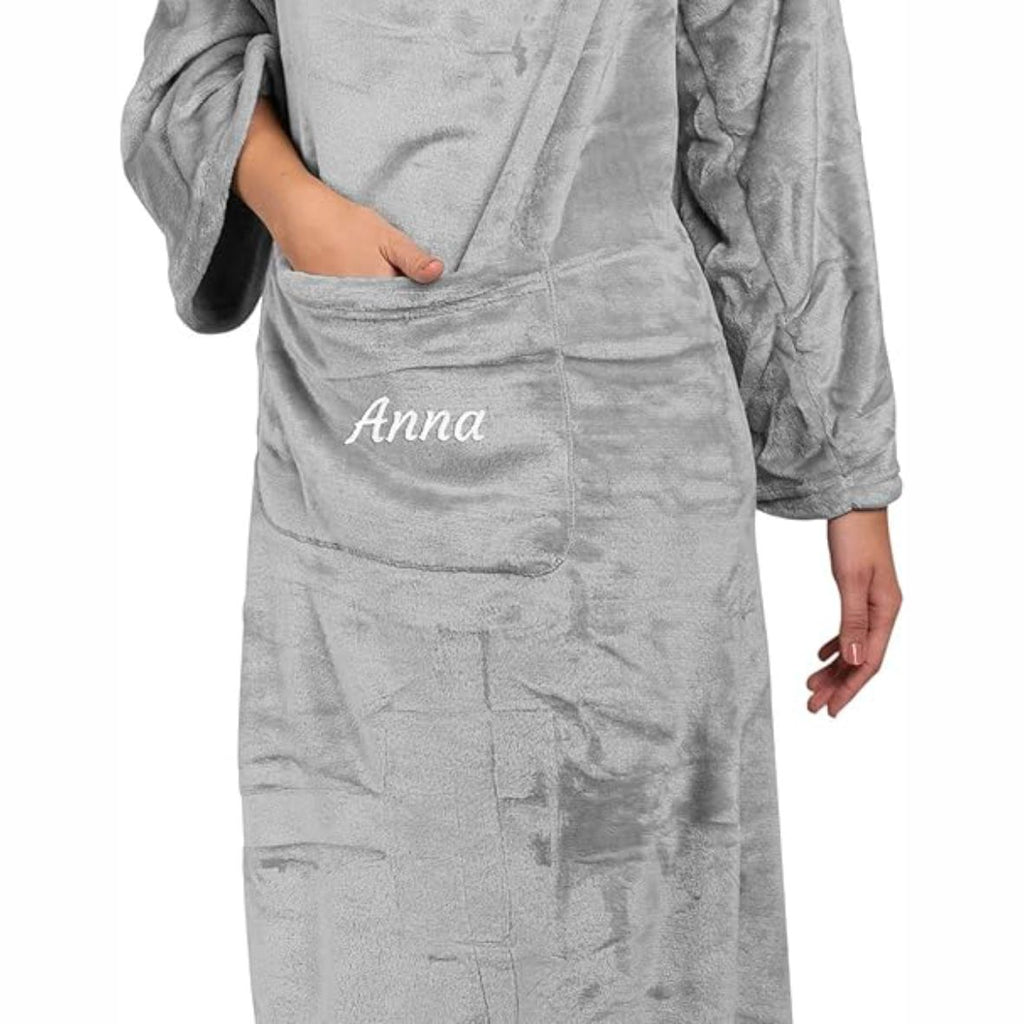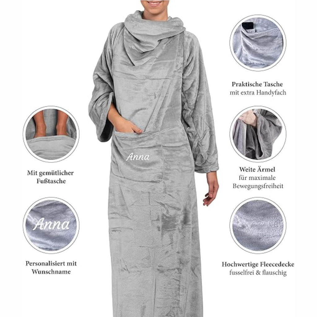 Kuscheldecke Personalisiert mit Namen -Flauschige Decke mit Ärmeln | Flanell Sofadecke/Wohndecke & TV-Decke mit Bauch und Handy-Tasche, 180x150cm