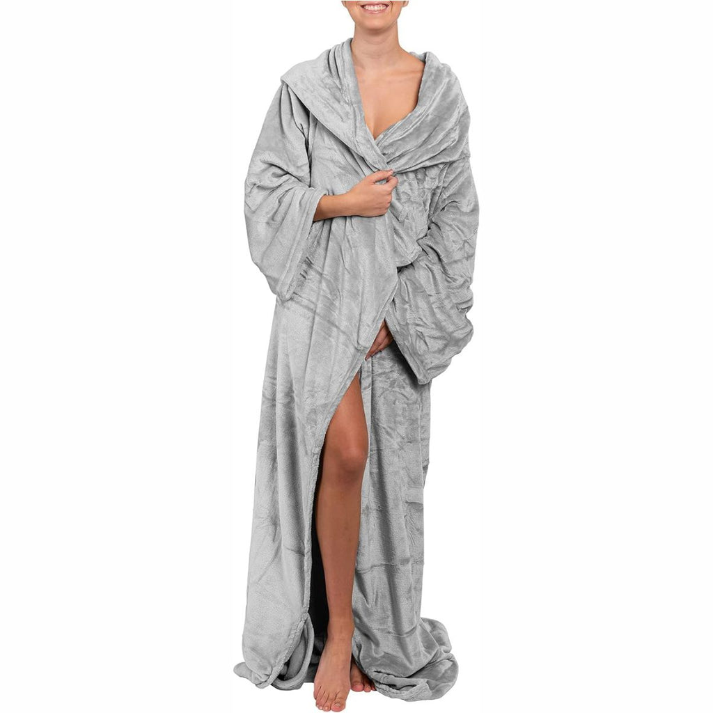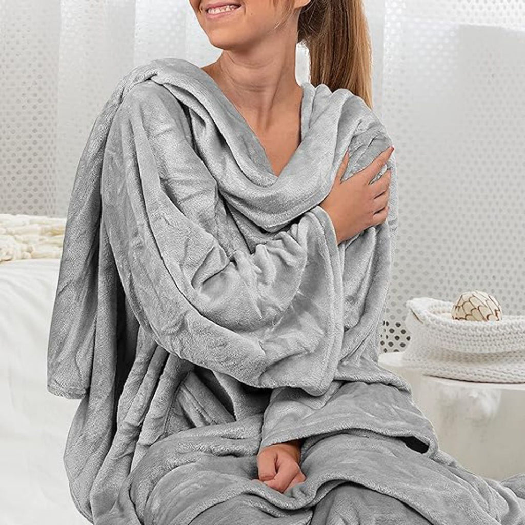 Stell dir vor: Draußen ist es ungemütlich, aber du liegst wohlig warm auf dem Sofa. Unsere Decke aus superweichem Fleece ist wie eine sanfte Umarmung. Dank der praktischen Ärmel kannst du dabei lesen, eine Tasse Tee trinken oder dein Handy bedienen, ohne dass dir kalt wird. Sie ist der perfekte Begleiter für gemütliche Abende, entspannte Wochenenden und sogar auf Reisen.