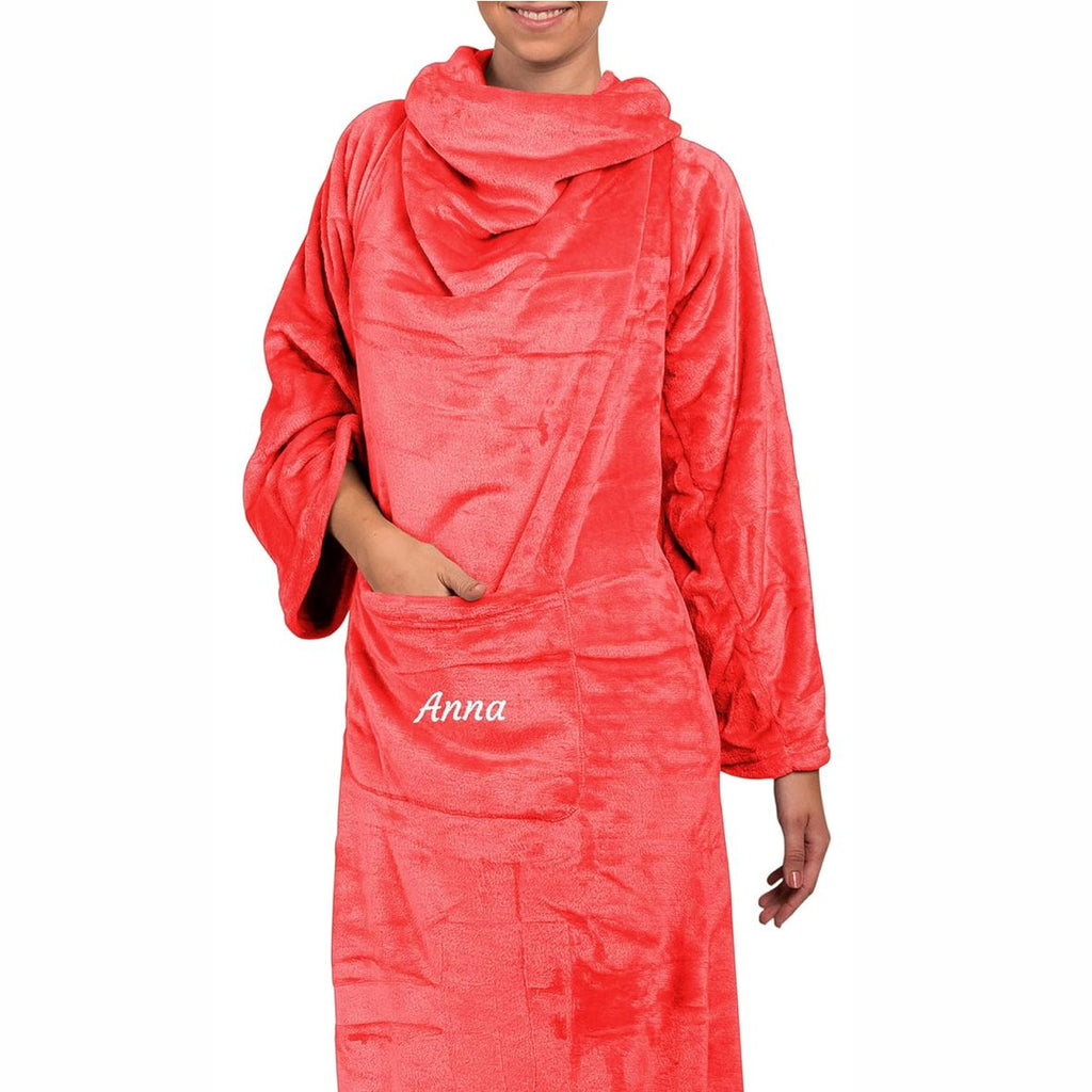 Kuscheldecke Personalisiert mit Namen -Flauschige Decke mit Ärmeln | Flanell Sofadecke/Wohndecke & TV-Decke mit Bauch und Handy-Tasche, 180x150cm