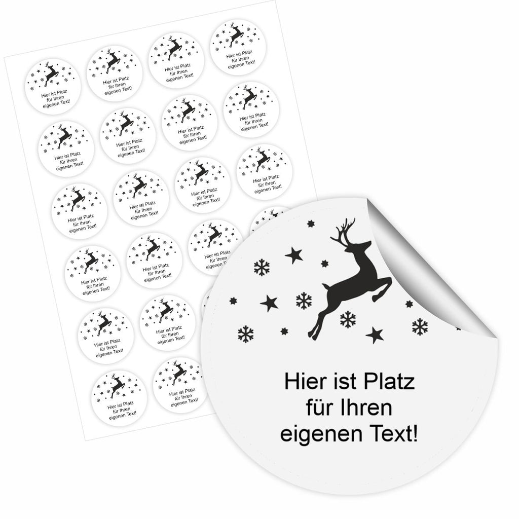 Personalisierte Aufkleber „Rentier” – 24 Stück – Runde Papieraufkleber (4,5 cm) für Weihnachten