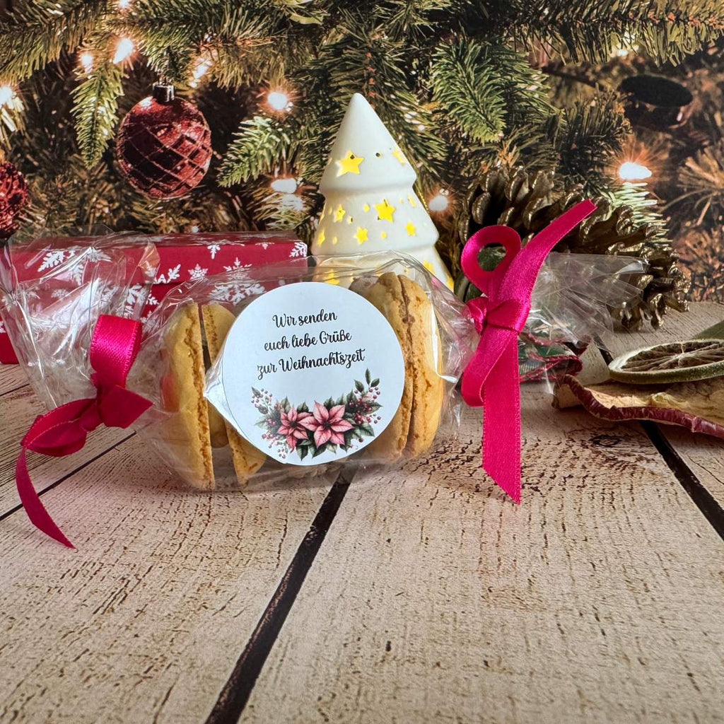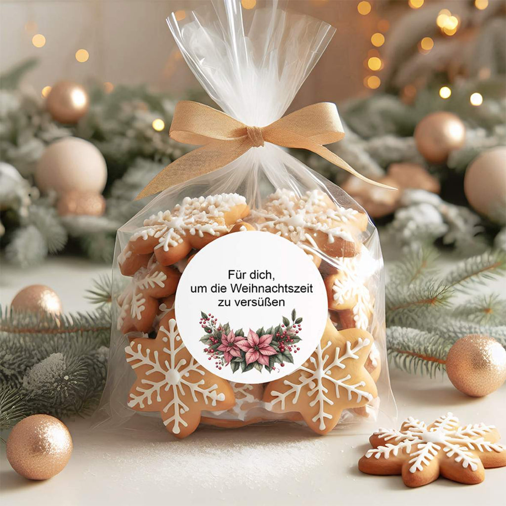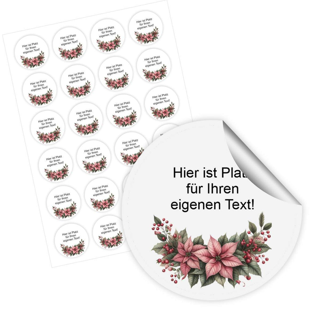 Personalisierte Aufkleber „Weihnachtsblüte” – 24 Stück – Runde Papieraufkleber (4,5 cm) für Weihnachten