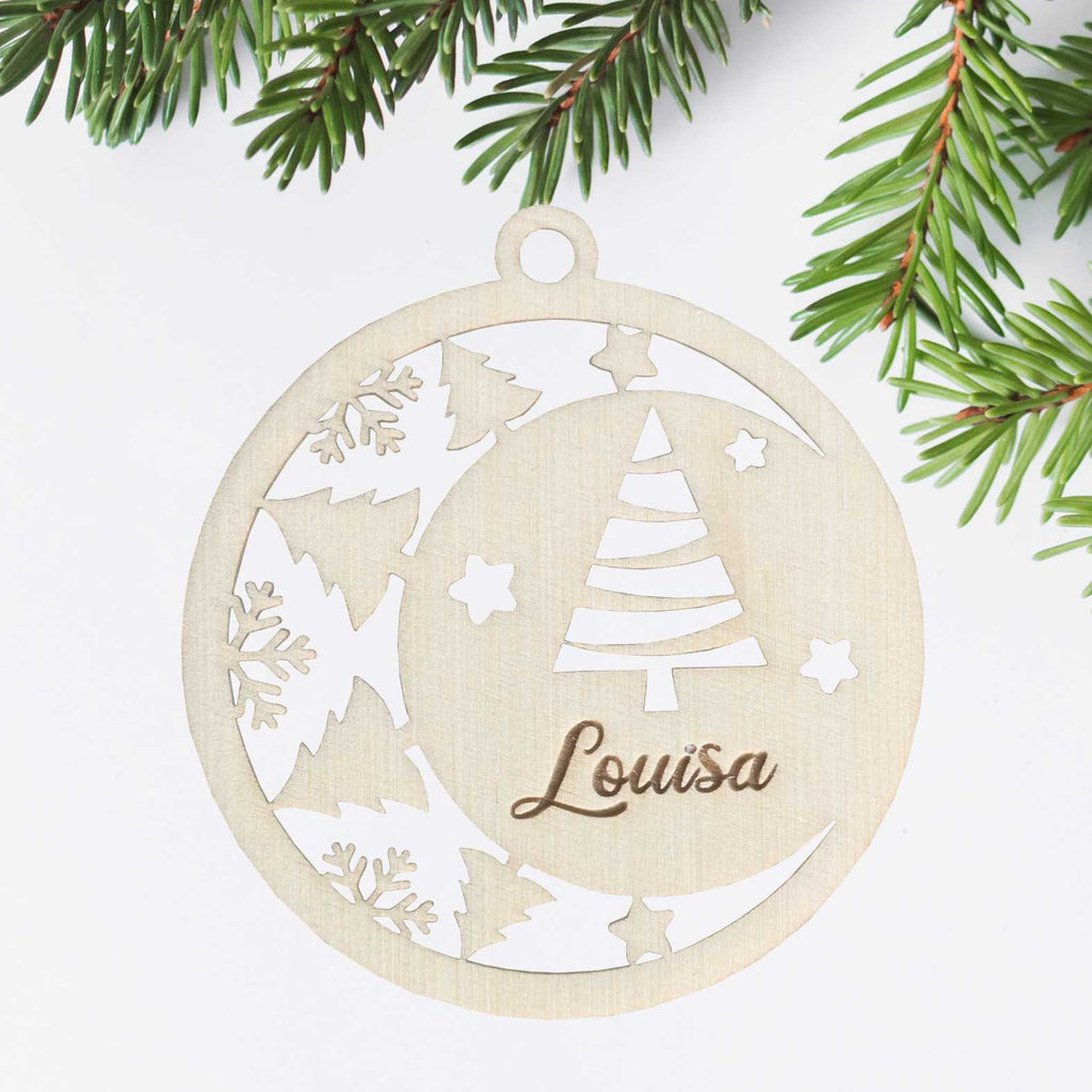 Weihnachten Kugel Anhänger aus natürlichem Birkensperrholz mit Wunschnamen - Personalisierte Weihnachtsbaumkugel, Weihnachtsbaumschmuck, Weihnachtsdeko aus Holz, Weihnachtsdekoration - schöne Geschenk-Idee zu Weihnachten