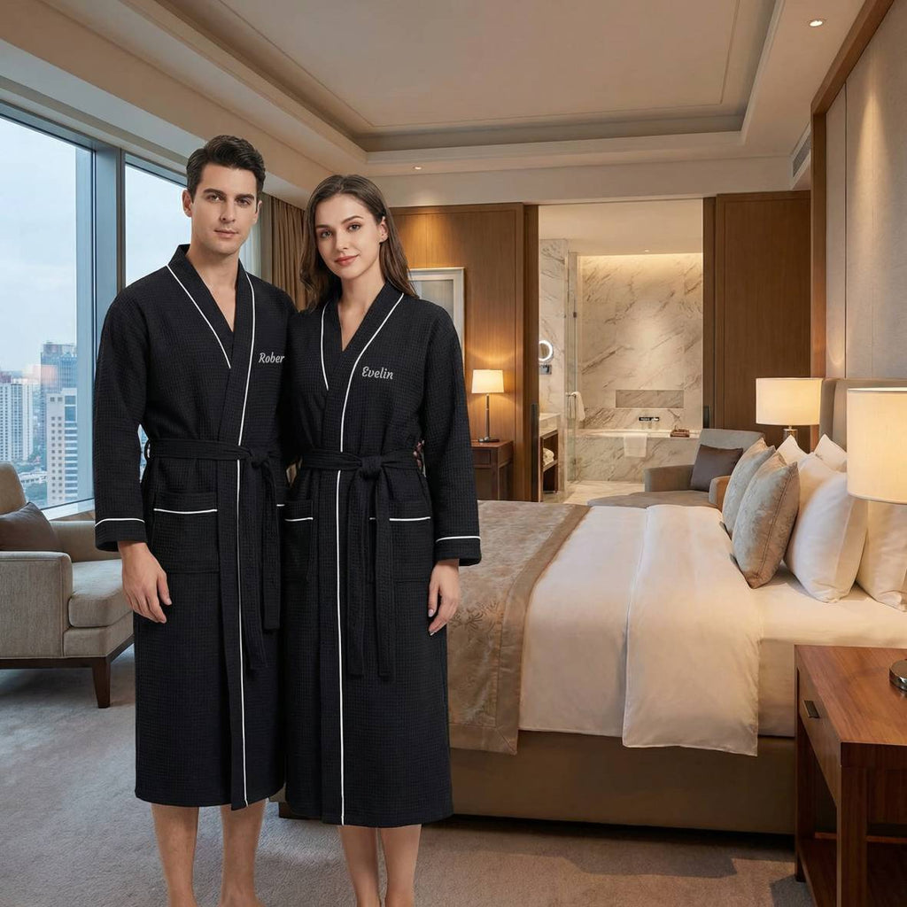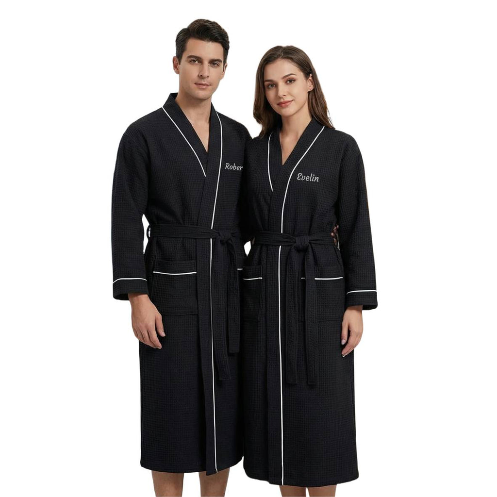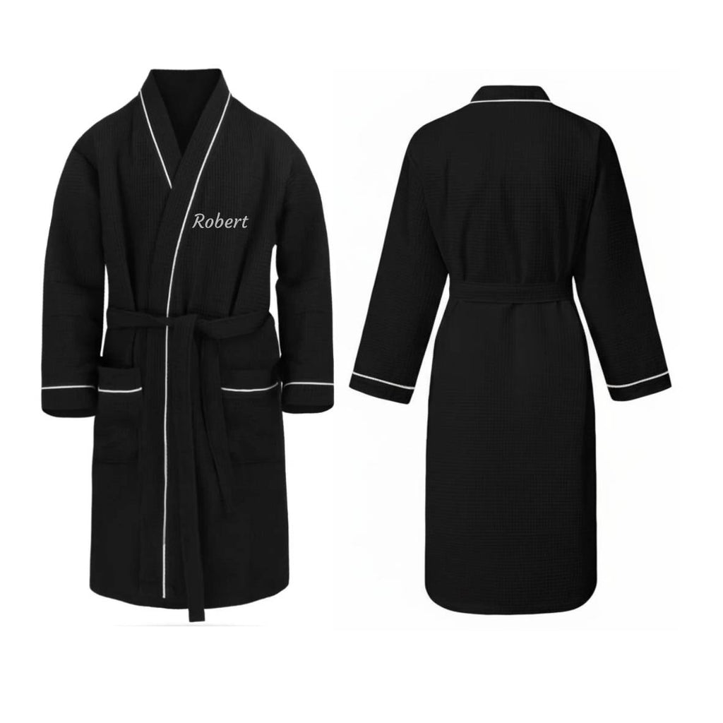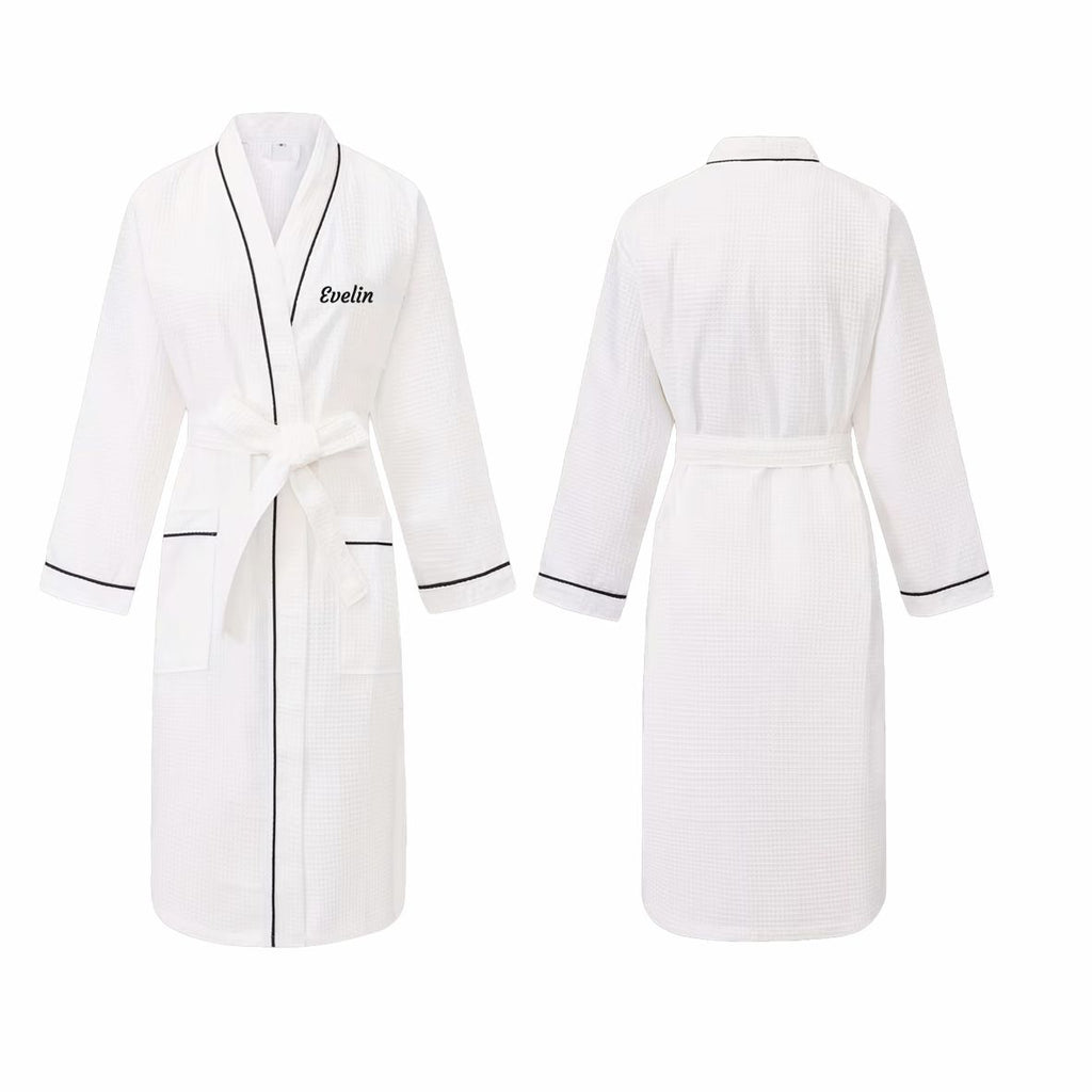 Personalisierter Waffel-Bademantel mit gesticktem Namen, 100% Baumwolle, weißer Reisebademantel leicht schnelltrocknend hautfreundlich für Damen und Herren