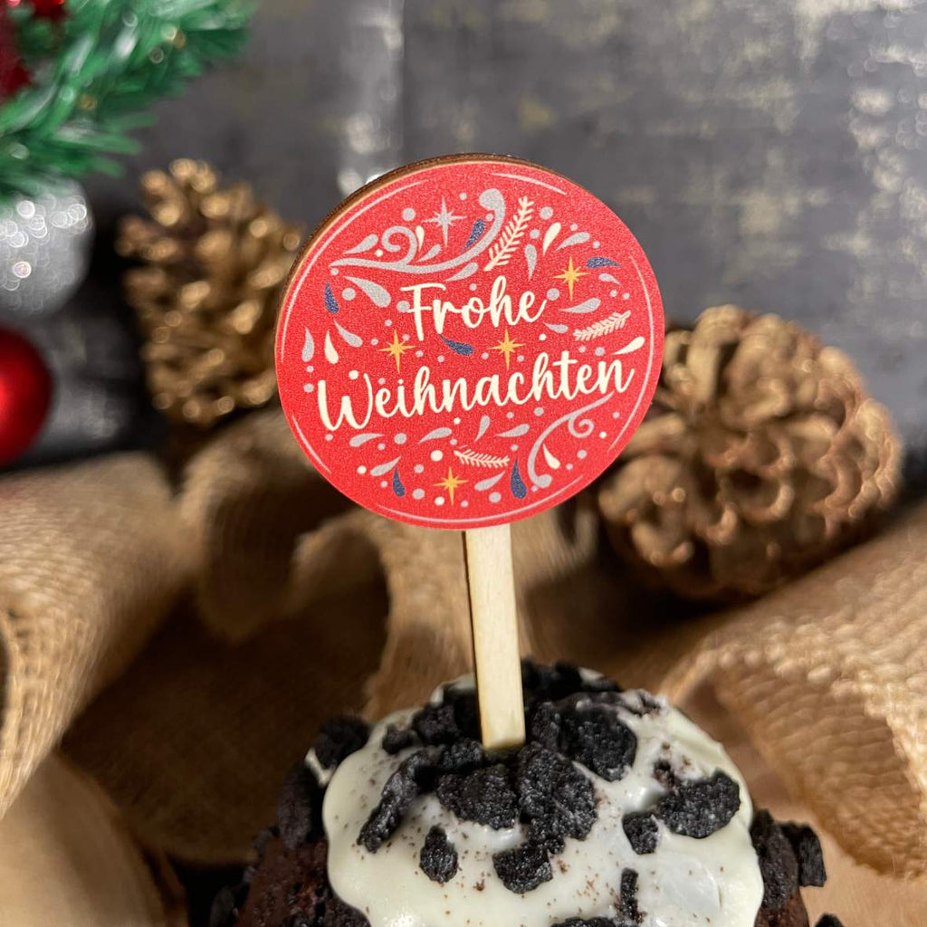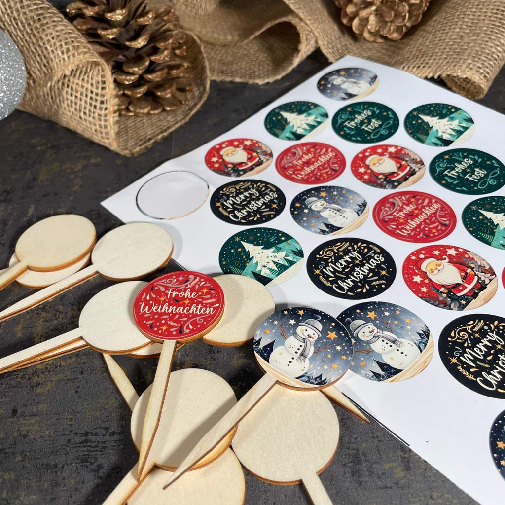 Cupcake Stecker 12er Set aus Holz mit Aufklebern- Muffin Cupcake Topper- Weihnachten