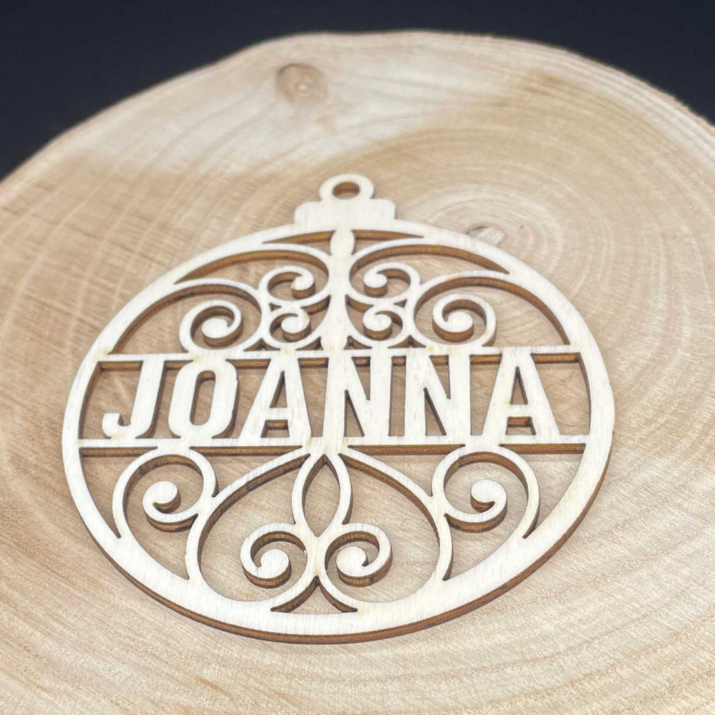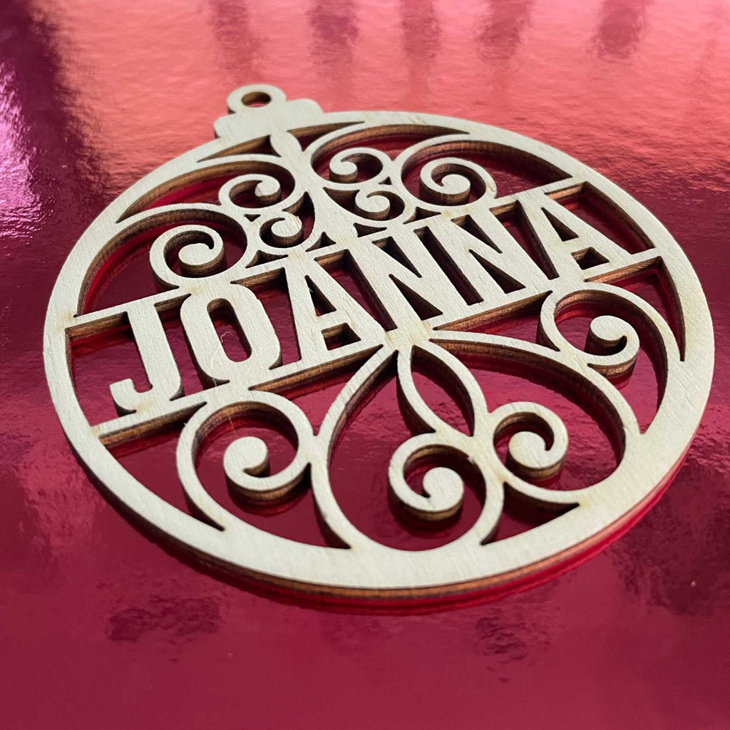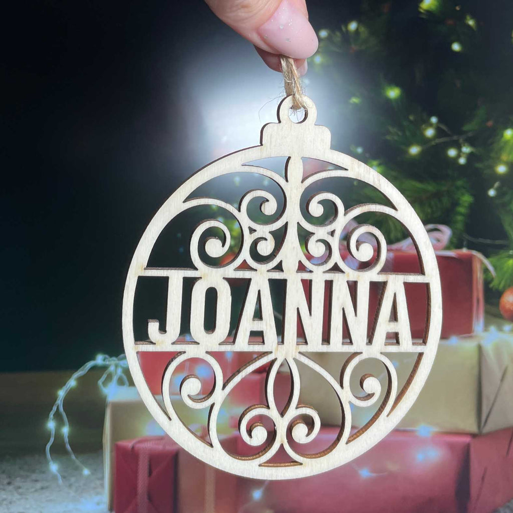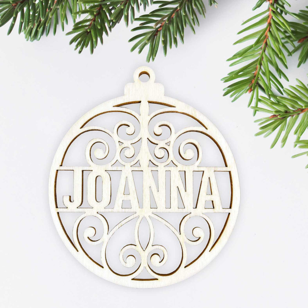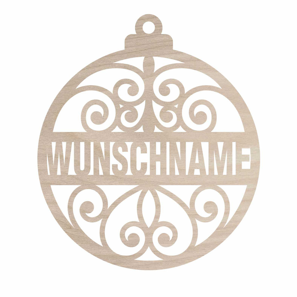 Weihnachtsbaumkugel aus natürlichem Birkensperrholz mit Namen - Ornament
