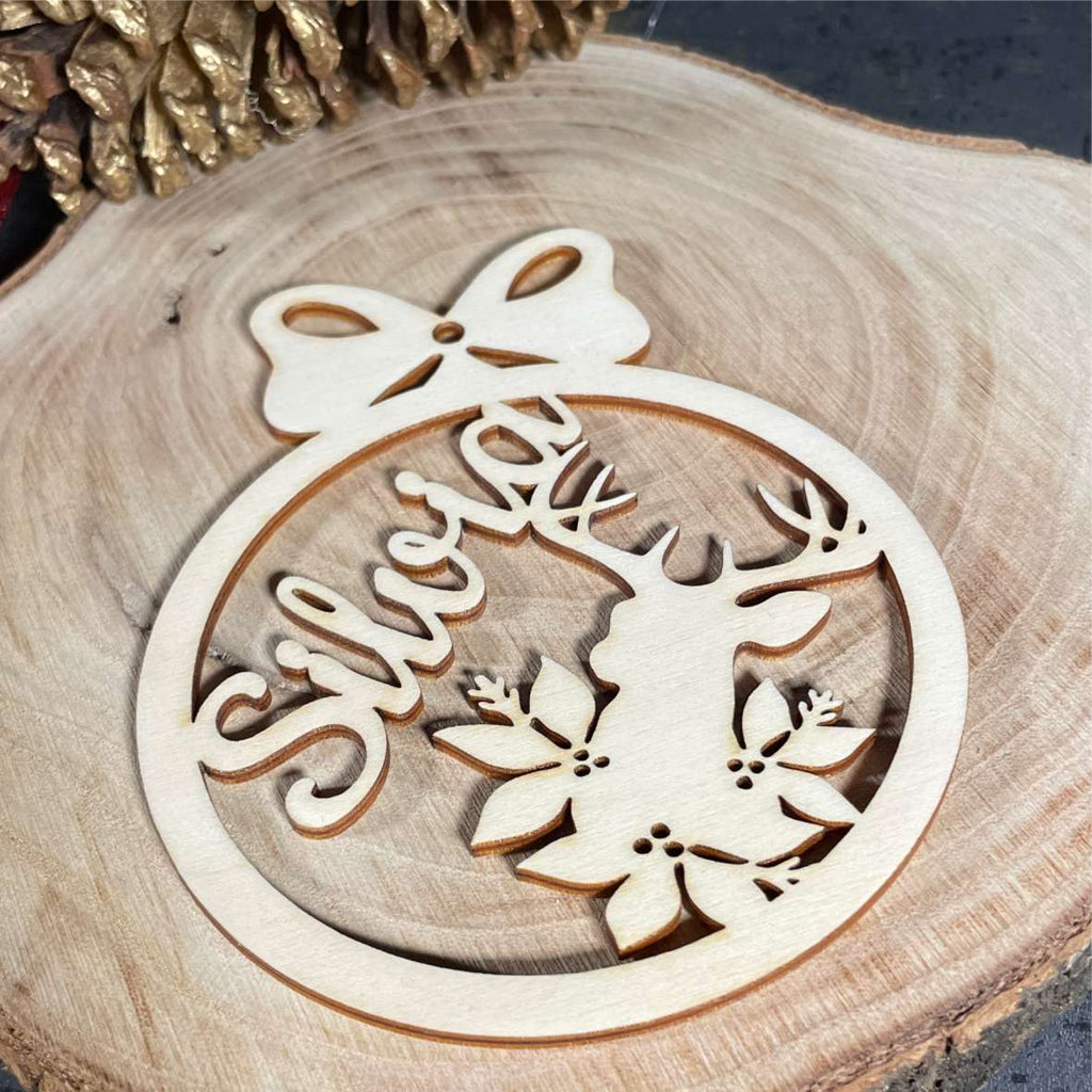 Weihnachtsbaumkugel aus natürlichem Birkensperrholz mit Wunschnamen - Personalisierte Weihnachtskugel, Weihnachtsbaumschmuck, Weihnachtsdeko aus Holz, Weihnachtsdekoration - schöne Geschenk-Idee zu Weihnachten