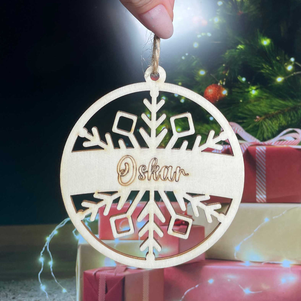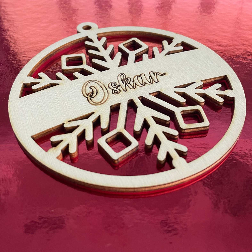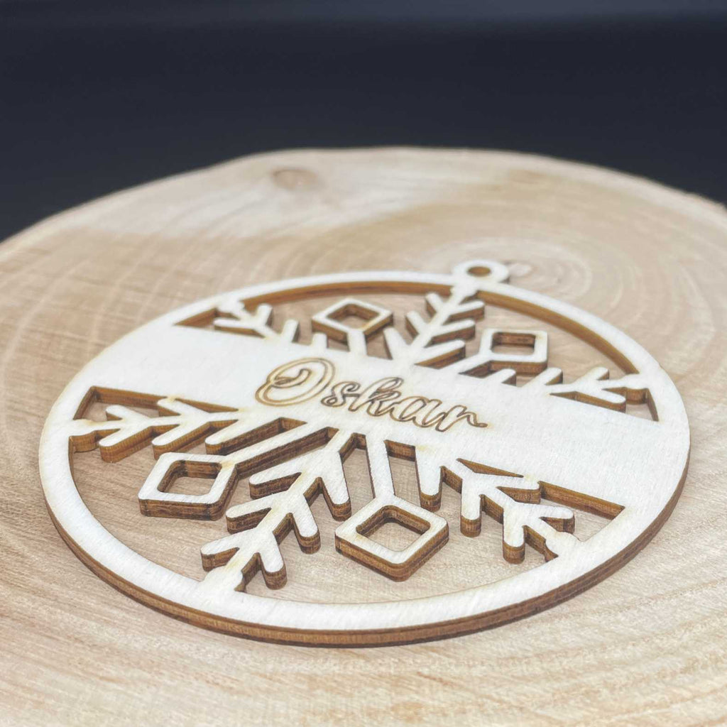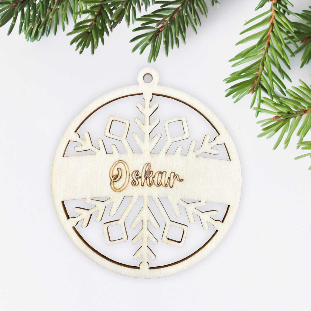 Weihnachtsbaumkugel aus natürlichem Birkensperrholz mit Namen - Skandinavisch