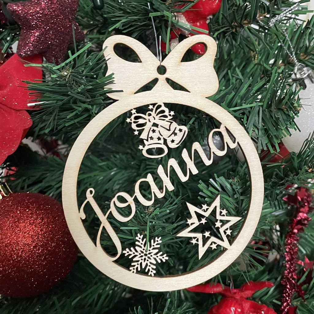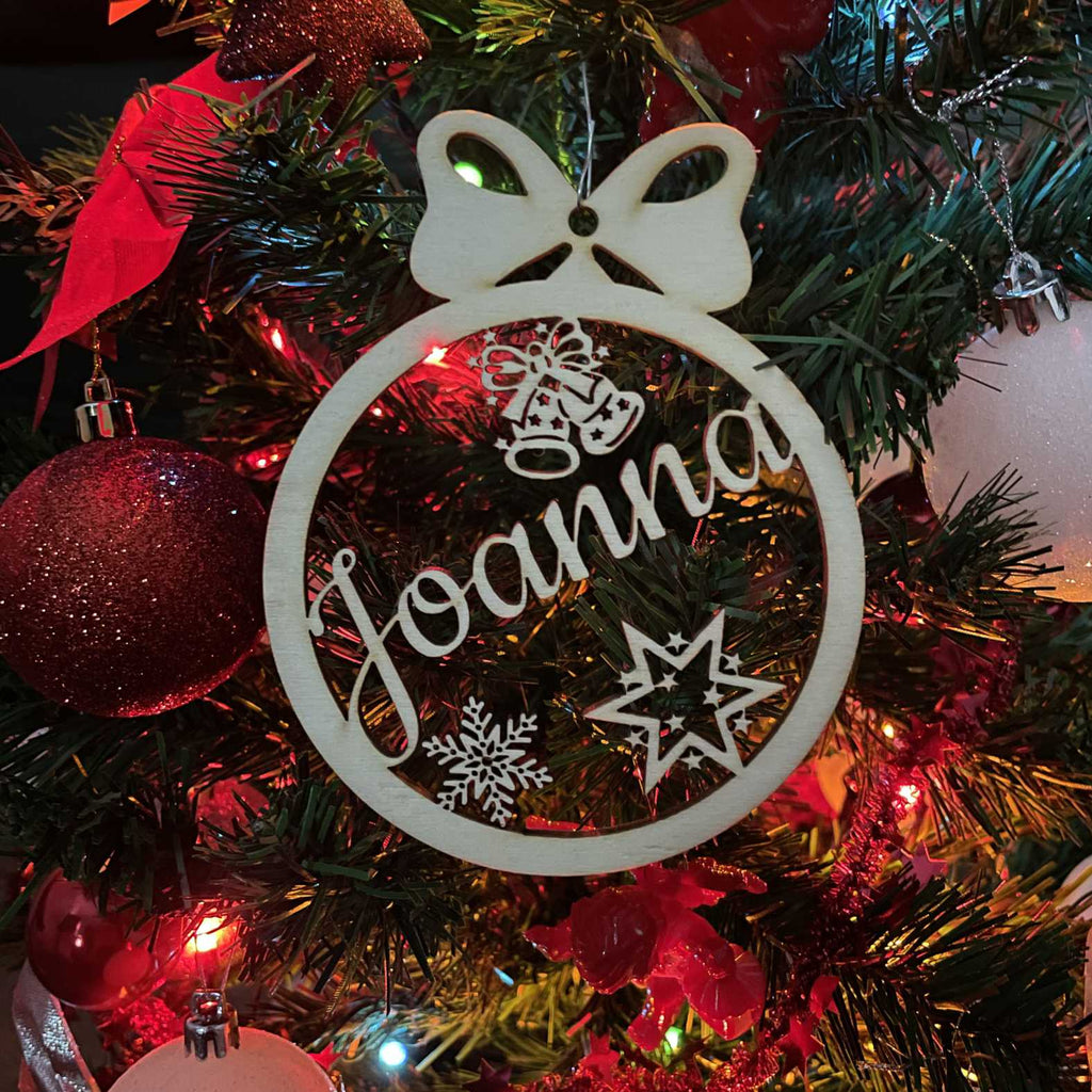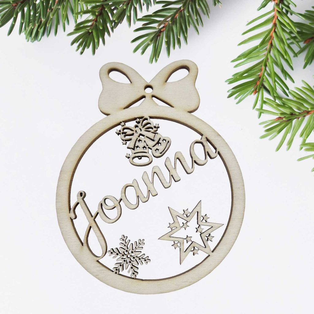 Weihnachtsbaumkugel aus natürlichem Birkensperrholz mit Wunschnamen - Personalisierte Weihnachtskugel, Weihnachtsbaumschmuck, Weihnachtsdeko aus Holz, Weihnachtsdekoration - schöne Geschenk-Idee zu Weihnachten