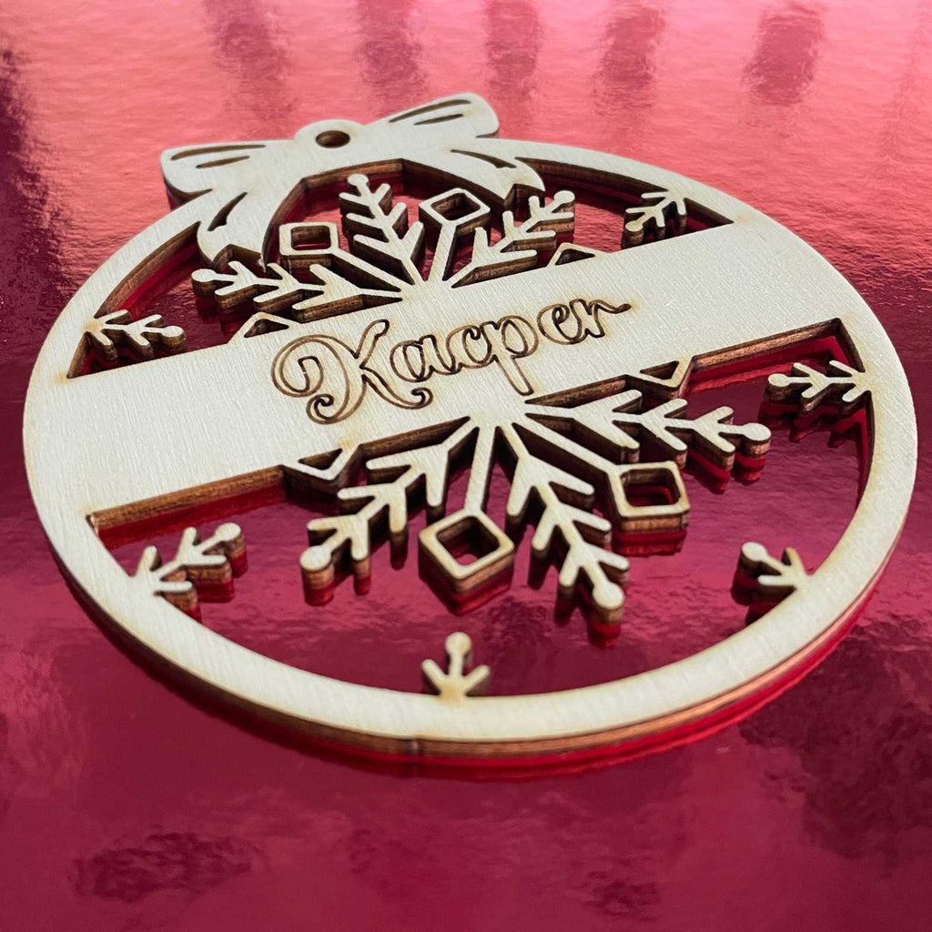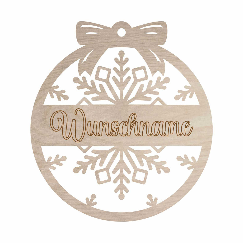Weihnachtsbaumkugel aus natürlichem Birkensperrholz mit Namen - Schneeflocke