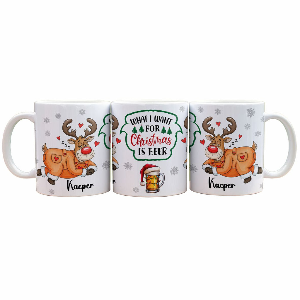 Weihnachtstasse - Personalisiert mit Namen | "What I want for Christmas is beer"
