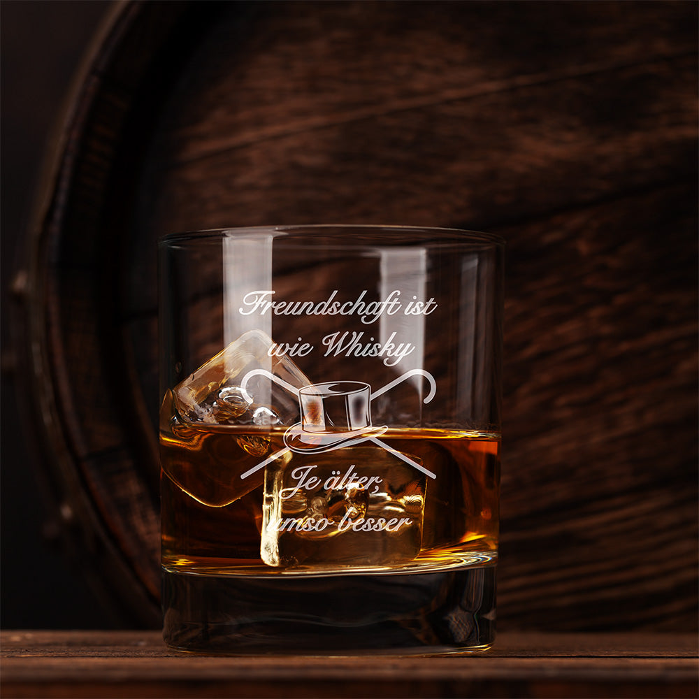 Entdecken Sie unser stilvolles Whiskey Glas Set, das sich perfekt als Freundschafts- oder Dankeschön-Geschenk für jeden Mann eignet. Überraschen Sie den Whiskyliebhaber in Ihrem Leben mit einem praktischen und eleganten Präsent, das mit einer persönlichen Widmung versehen ist.